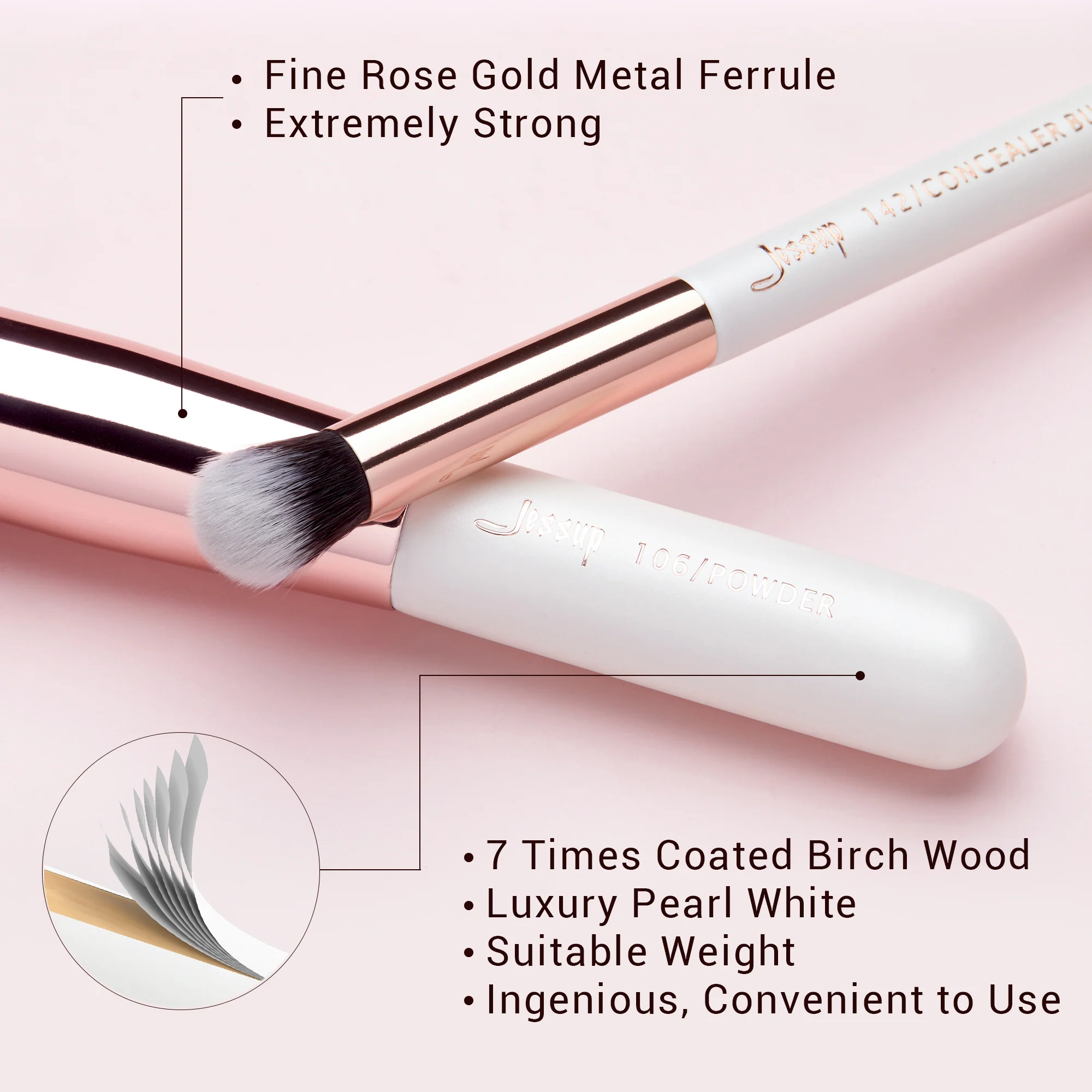 Jessup’s latest High-quality natural-synthetic hair technology make brushes luxury and unique, it has super ability to grasp power, touch skin friendly.