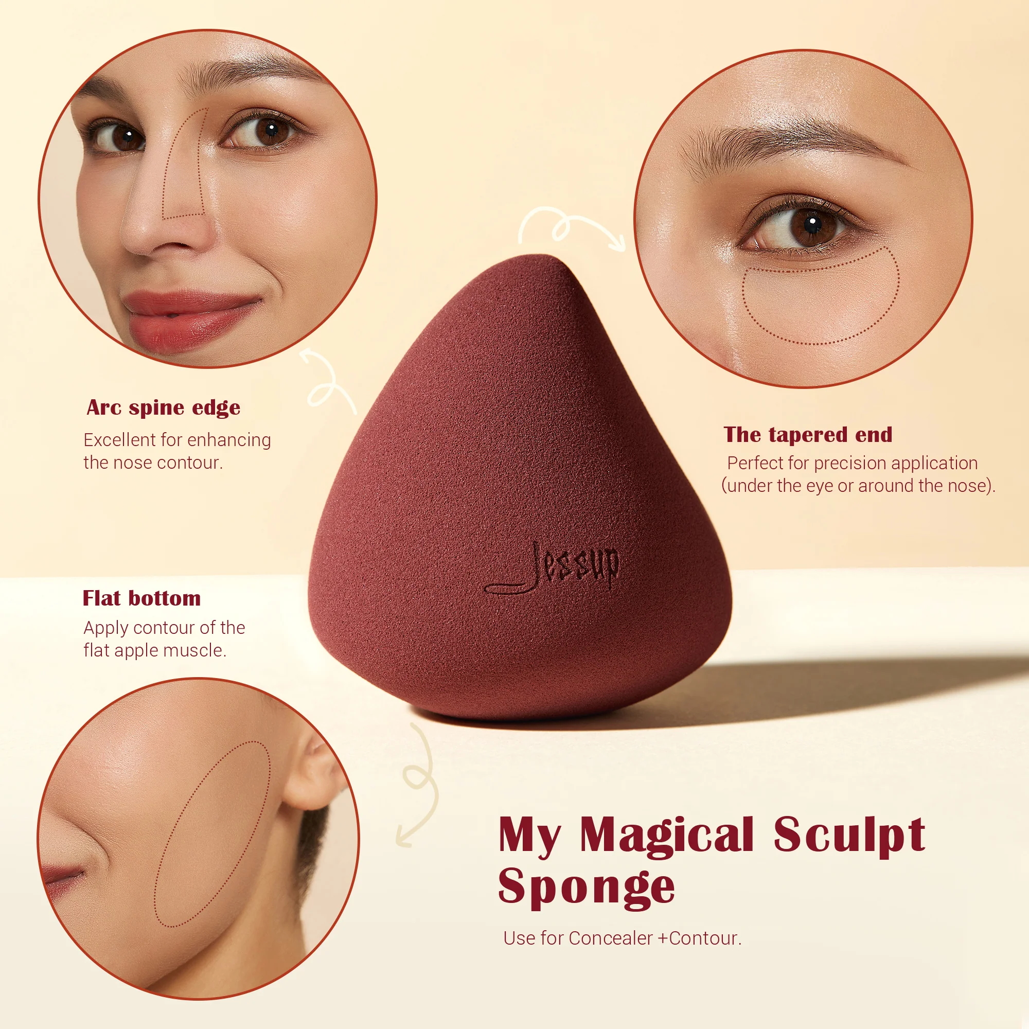 F05 Duo-ended Face Contour Brush: This duo-ended contour brush for applying cream and powder contour with ease; with Jessup exclusive synthetic bristles to sculpt and blend for a soft, defined look.